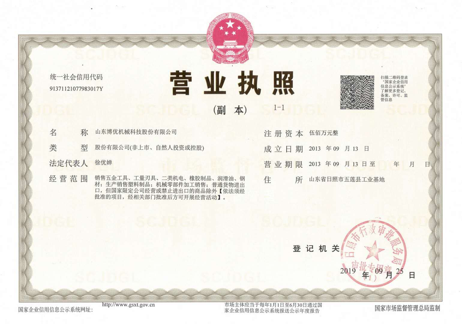 2017年1月公司重新注冊為山東博優(yōu)機械科技股份有限公司,公司占地20畝,